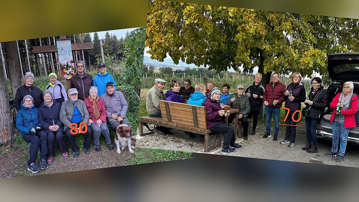2 Jubilare waren im Habergwald mit Begleitern bei der Montagswanderung unterwegs und versorgten sie mit Jause und Getränken. HAPPY BIRTHDAY, Christa und Alois, und alles Gute!