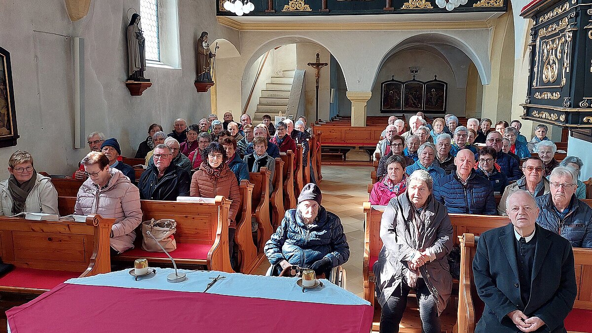 Unsere Kurzroas für unsere weniger mobilen SeniorInnen führte 64 Teilnehmer am 19. März nach Windhag. Die Pfarrkirche ist dem Hl.Nikolaus von Myra geweiht und wurde im 14.Jahrhundert erbaut und in den kommenden Jahrhunderten immer wieder vergrößert und erneuert. Der Hochaltar ist in der Fastenzeit mit einem Fastentuch verhüllt, daher konnten wir die schöne Statue des Hl.Nikolaus leider nicht sehen. Danke P.Franz für deine Begrüßungsworte und die Mitfeier unserer kurzen Andacht. Auf dem Weg zum Mittagessen beim Windhager Wirt, konnten wir den Friedhof mit den beeindruckenden schmiedeeisernen Kreuzen bewundern. Mit gutem Essen und schöner Musik ging der unterhaltsame Ausflug am frühen Nachmittag zu Ende.