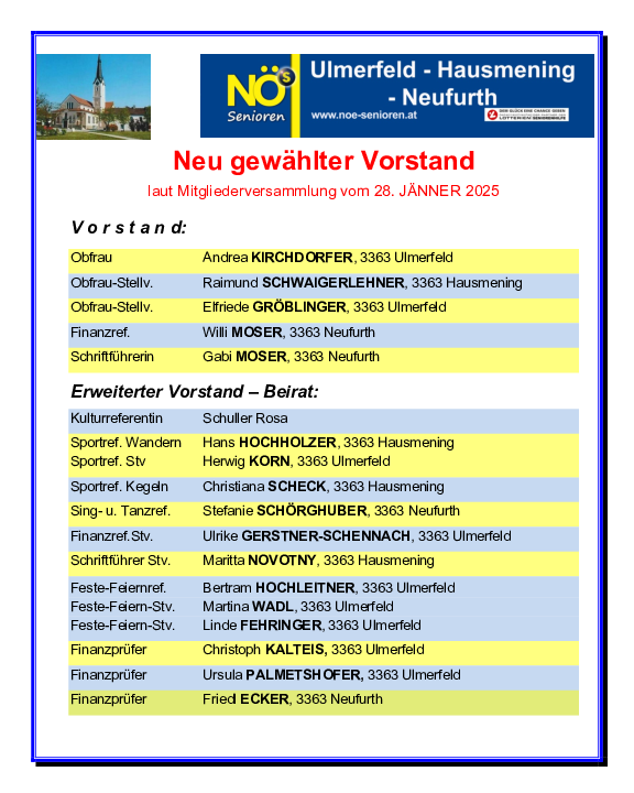 Willkommen bei NÖs Senioren Ulmerfeld-Hausmening-Neufurth