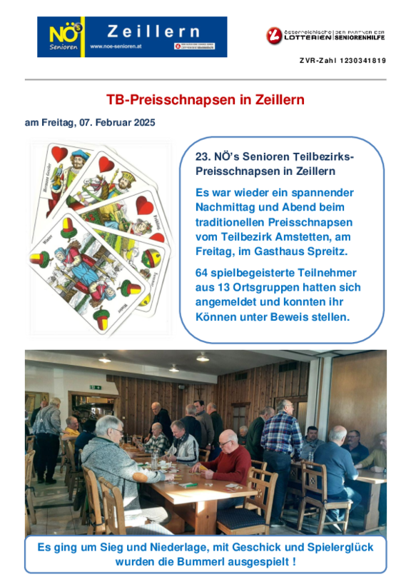 Am 25. Februar 2025 folgten 90 Seniorinnen und Senioren der Einladung zur Jahreshauptversammlung ins Hotel Schloss Zeillern. Grußworte an das…