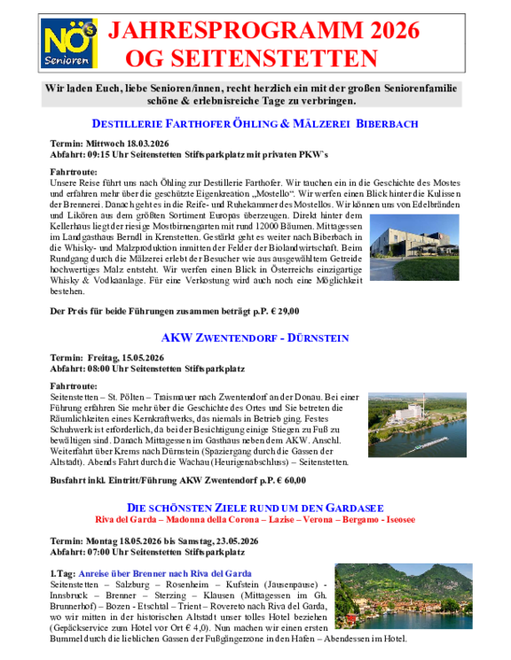 Die NÖ-Senioren Ortsgruppe Seitenstetten wird seit der erfolgreichen Wahl am 23.10.2025 weiterhin von Obmann Stefan Günther und seinem Team geleitet. Zur Jahresmitte 2025 zählte der Verein gut 370 Mitglieder, welche stets mit Begeisterung und sehr zahlreich an den Veranstaltungen der OG Seitenstetten teilnehmen.