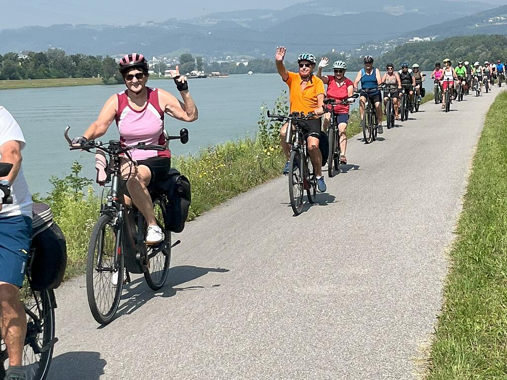 Von Aschach fahren wir weiterhin auf der Südseite der Donau bis Ottensheim. Wir überqueren mit der Autofähre „Drahtseilbrücke“ die Donau. Auf der Nordseite umfahren wir Linz. Weiter geht es bis zum Kraftwerk Abwinden-Asten, wo wir auf die Donau-Südseite wechseln. Quasi mitten durch die Stadt Enns geht es auf dem Ennsradweg bis Thaling, wo wir im Thalinger Hof zum Mittagessen einkehren. Von Thaling fahren wir westlich der Enns bis Kronstorf, wo wir über das Kraftwerk die Enns überqueren. In Ernsthofen geht es den Berg hinauf und entlang Loderleiten und Reiterdorf nach Vestenthal. Über Holzschachen geht es nach Weistrach, wo wir im 3 Mäderl Haus nochmals zum Drinken und auf ein Eis einkehren. Über Hartlmühl und St. Peter radeln wir nach Hause.