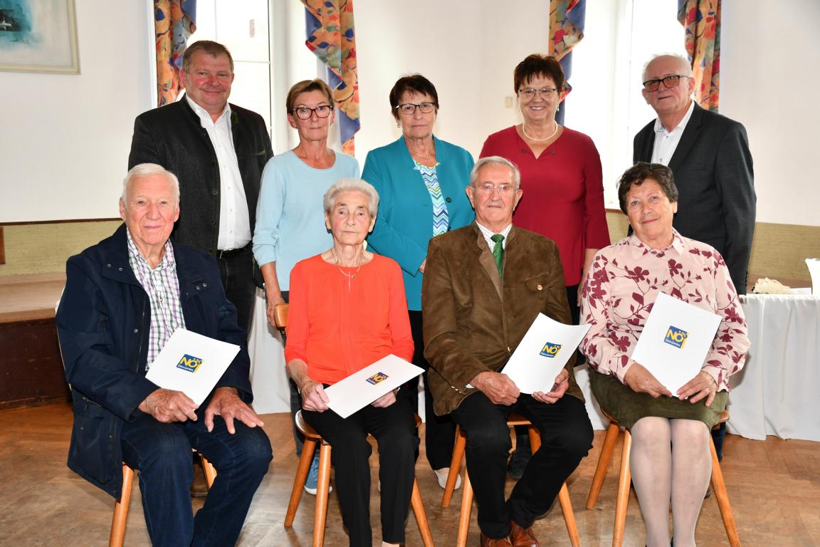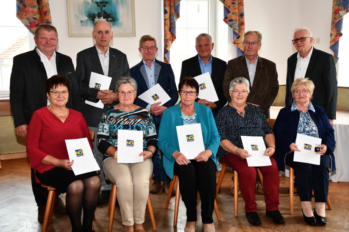 Am 26. September fand im Gasthaus Zatl der Ortsgruppentag mit Neuwahlen statt. Obfrau Maria Haiden konnte zu dieser Veranstaltung Bürgermeister Josef Unterberger und Teil-Bezirksobmann Leopold Buchberger sowie 67 Mitglieder der Ortsgruppe begrüßen. Bürgermeister Josef Unterberger betonte die gute Zusammenarbeit und hob auch die fortwährende Präsenz der Senioren im Gemeindeleben hervor; weiters berichtete er über aktuelle Projekte der Gemeinde. Obfrau Maria berichtete über die vielen Veranstaltungen der letzten Zeit, wobei das Thema „gemeinsam – statt einsam“ immer wieder erwähnt wurde. Dank erging an den gesamten Vorstand – im Besonderen an ihre beiden scheidenden Stellvertreter sowie an die Sprengelbetreuer für die verlässliche Zusammenarbeit. Finanzreferent Josef Tanzer berichtete über den aktuellen Kassenstand; Finanzprüfer Karl Stöffelbauer berichtete über die stattgefundene Kassaprüfung und die gewissenhafte Führung der Kassa und ersuchte um Entlastung des Finanzreferenten und des gesamten Vorstands. Teil-Bezirksobmann Leopold übernahm den Vorsitz - der aufgelegte Wahlvorschlag wurde angenommen und bei der anschließend stattgefundenen Wahl wurde Maria Haiden mit 100 % zur Obfrau und ihre neuen Stellvertreter Margarete Kammerhofer und Christa Brunmayr gewählt. Alle Vorstandsmitglieder wurden mittels Handzeichen bestätigt; alle haben die Wahl angenommen. Es folgte die Ehrung von langjährigen Mitgliedern sowie die Überreichung von Ehrenzeichen in „Bronze“ an Christa Brunmayr, Herta Fehringer, Herma Steinbauer, Karl Stöffelbauer, Josef Tanzer und Rudolf Wagner. Mit dem Ehrenzeichen in „Gold“ wurden Cäcilia Böll, Karl Schadauer, Eva Maria Stöger und die erneut gewählte Obfrau Maria Haiden ausgezeichnet. Seitens der Ortsgruppe bedankte sich die Obfrau bei den ausscheidenden Vorstandsmitglieder - bei Cäcilia Böll und bei Karl Schadauer für langjährige Stellvertreterarbeit, sowie bei Rudolf Wagner für viele Jahre als Finanzprüfer. Mit den Schlussworten bedankte sich die Obfrau beim Herrn Bürgermeister für die gute Zusammenarbeit, bei Leopold Buchberger für die Leitung der Wahl sowie bei allen Mitgliedern für das zahlreiche Kommen. Im Anschluss hat die Ortsgruppe Wolfsbach zum „Schnitzerl“ eingeladen – herzlichen Dank dafür.